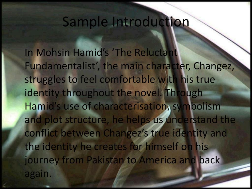 Sample Introduction In Mohsin Hamid’s ‘The Reluctant Fundamentalist’, the main character, Changez, struggles to feel comfortable with his true identity throughout the novel. Through Hamid’s use of characterisation, symbolism and plot structure, he helps us understand the conflict between Changez’s true identity and the identity he creates for himself on his journey from Pakistan to America and back again.