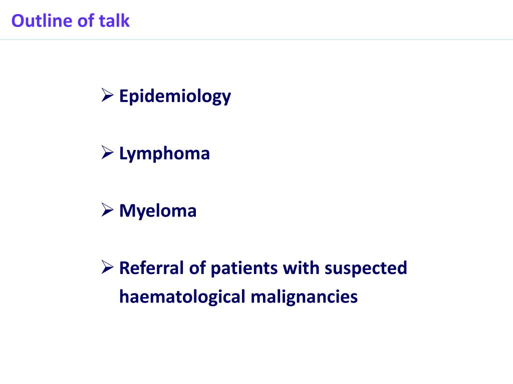 Outline of talk • Epidemiology • Lymphoma • Myeloma • Referral of patients with suspected haematological malignancies