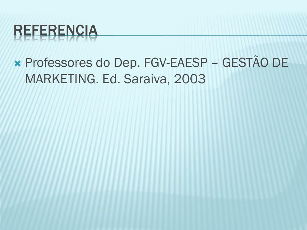 Professores do Dep. FGV-EAESP – GESTÃO DE MARKETING. Ed. Saraiva, 2003 REFERENCIA