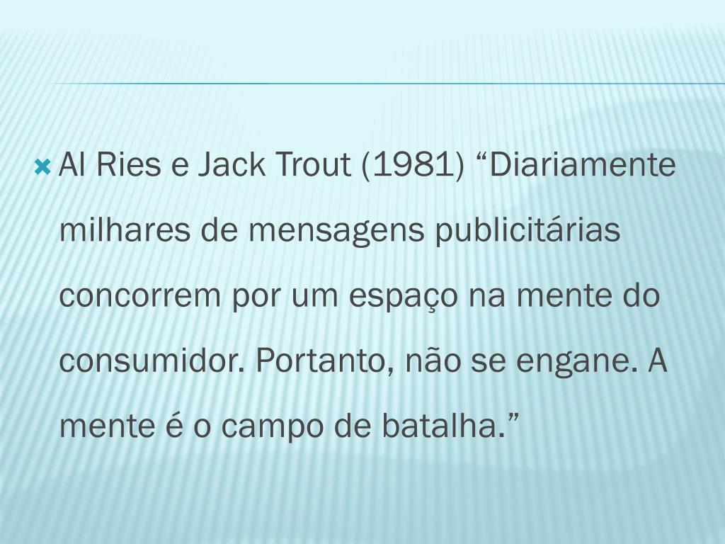 Al Ries e Jack Trout (1981) “Diariamente milhares de mensagens publicitárias concorrem por um espaço na mente do consumidor. Portanto, não se engane. A mente é o campo de batalha.”