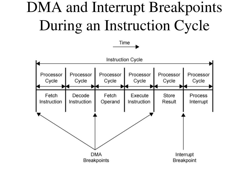 Direct Memory Access • Interrupt driven and programmed I/O require active CPU intervention • Transfer rate is limited by the speed of processor testing and servicing a device • CPU is tied up in managing an I/O transfer. A number of instructions must be executed for each I/O transfer. • DMA is the answer when large amounts of data need to be transferred.