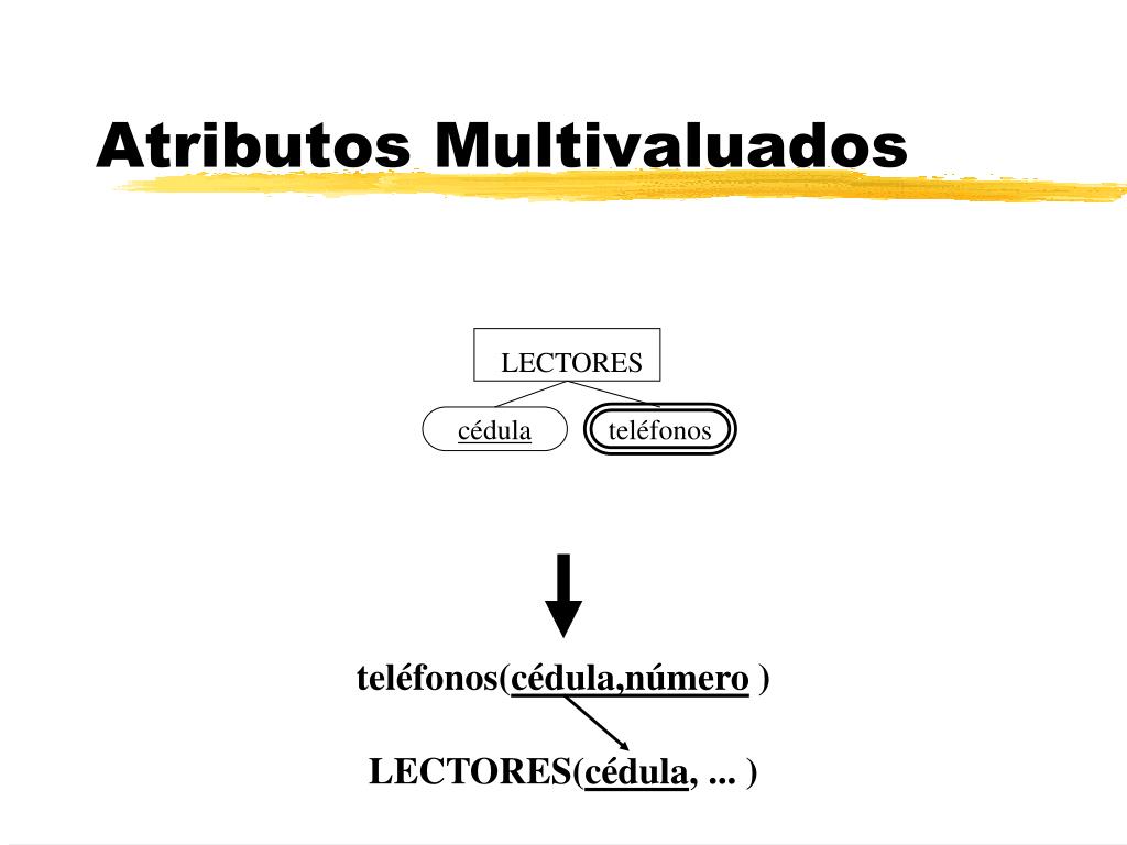 cédula teléfonos LECTORES Atributos Multivaluados teléfonos(cédula,número ) LECTORES(cédula, ... )