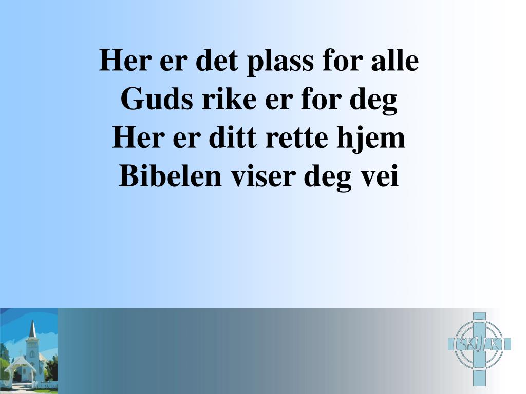 Her er det plass for alle Guds rike er for deg Her er ditt rette hjem Bibelen viser deg vei
