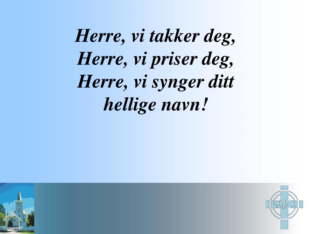 Herre, vi takker deg,Herre, vi priser deg,Herre, vi synger ditt hellige navn!