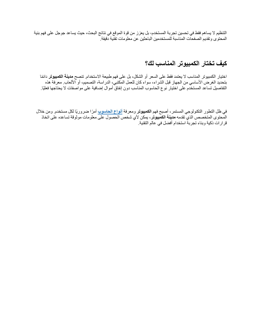 ةينب مهف ىلع لجوج دعاسي ثيح ،ثحبلا جئاتن يف عقوملا ةوق نم ززعي لب ،مدختسملا ةبرجت نيسحت يف طقف مهاسي لا ميظنتلا ةقيقد ةينقت تامولعم نع نيثحابلا نيمدختسملل ةبسانملا تاحفصلا ميدقتو ىوتحملا . ؟كل بسانملا رتويبمكلا راتخت فيك اًمئاد حصنت .مادختسلاا ةعيبط مهف ىلع لب ،لكشلا وأ رعسلا ىلع طقف دمتعي لا بسانملا رتويبمكلا رايتخا هذه ةفرعم .باعللأا وأ ،ميمصتلا ،ةساردلا ،يبتكملا لمعلل ناك ءاوس ،ءارشلا لبق زاهجلا نم يساسلأا ضرغلا ديدحتب اًيلعف اهجاتحي لا تافصاوم ىلع ةيفاضإ لاومأ قافنإ نود بسانملا بوساحلا عون رتويبمكلا ةنيدم . رايتخا ىلع مدختسملا دعاست ليصافتلا للاخ نمو .مدختسم لكل اًيرورض اًرمأ ذاختا ىلع هدعاست ةقوثوم تامولعم ىلع لوصحلا صخش يلأ نكمي ، بوساحلا عاونأ ةفرعمو رتويبمكلا مهف حبصأ ،رمتسملا يجولونكتلا روطتلا لظ يف همدقت يذلا صصختملا ىوتح رتويبمكلا ةنيدم ةينقتلا ملاع يف لضفأ مادختسا ةبرجت ءانبو ةيكذ تارارق ملا .