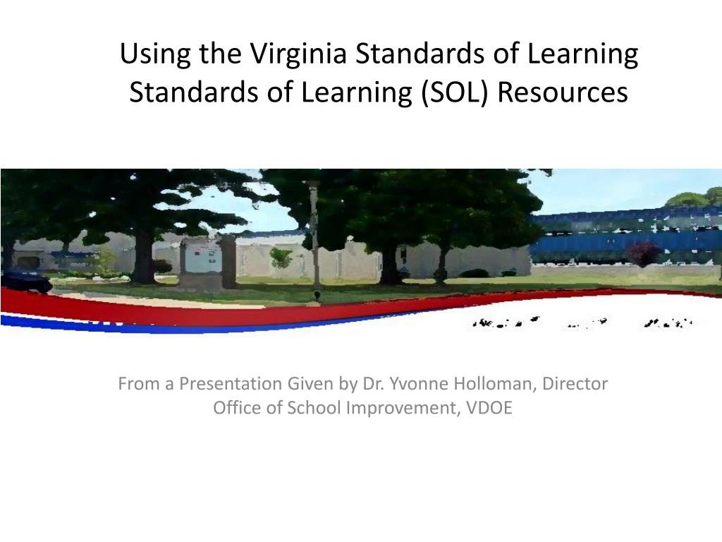 Using the Virginia Standards of Learning Standards of Learning (SOL) Resources From a Presentation Given by Dr. Yvonne Holloman, Director Office of School Improvement, VDOE