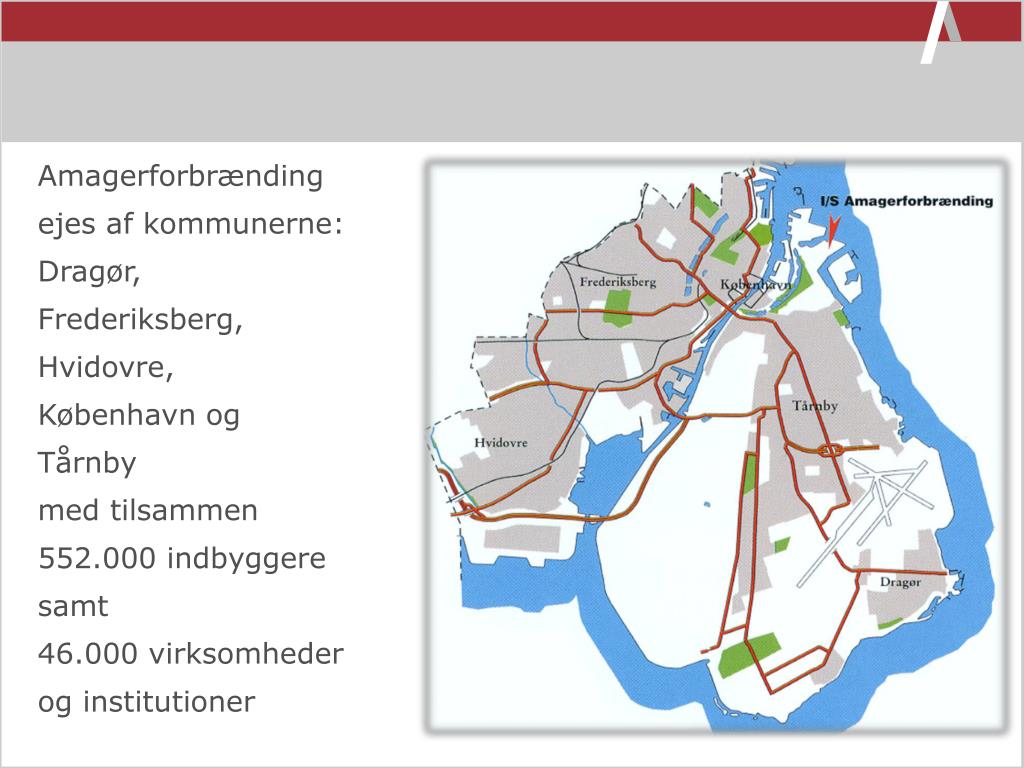 Amagerforbrænding ejes af kommunerne: Dragør, Frederiksberg, Hvidovre, København og Tårnby med tilsammen 552.000 indbyggere samt 46.000 virksomheder og institutioner