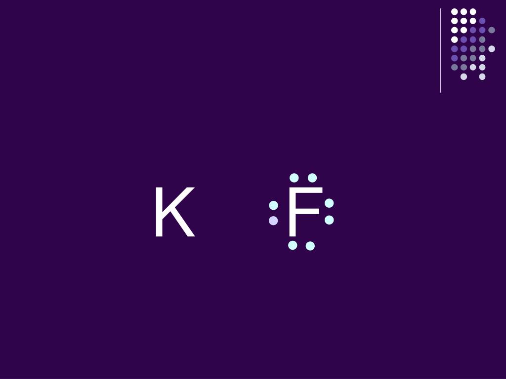 _ + ANION CATION K F • An atom that loses electrons gets a positive charge and is a cation • (Think of the t in cation as a plus sign) • An atom that gains electrons gets a negative charge and is an anion