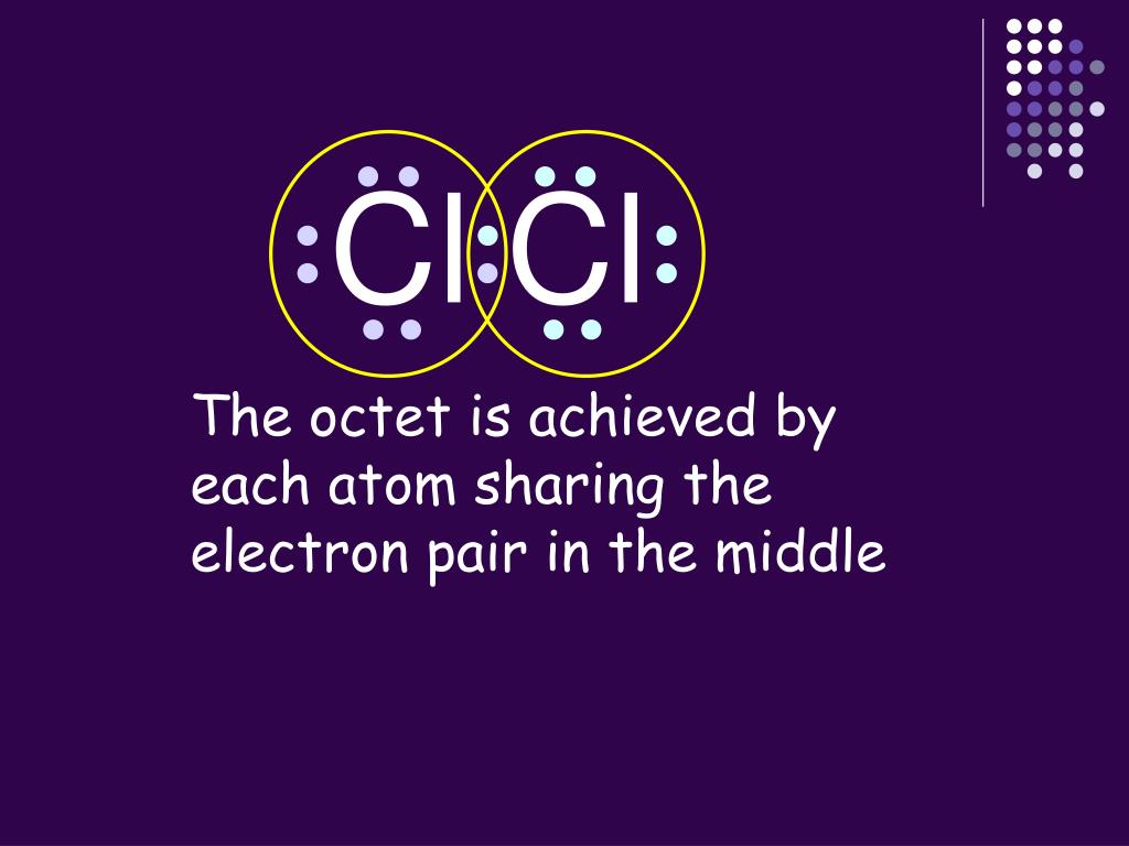Cl Cl The octet is achieved by each atom sharing the electron pair in the middle