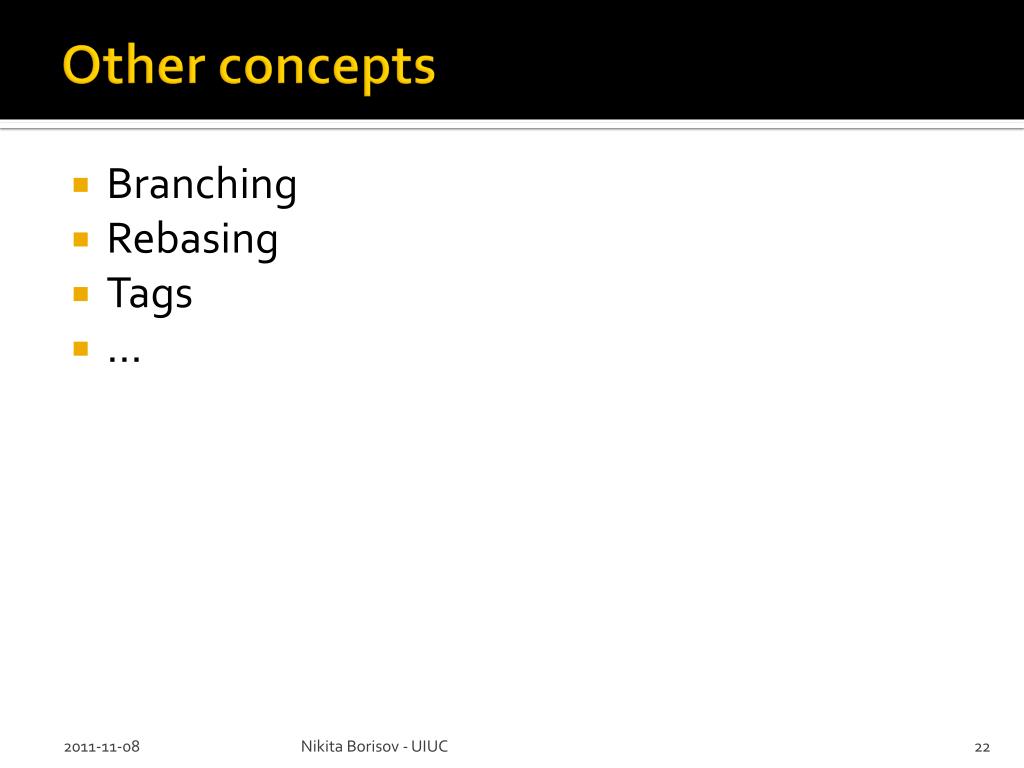 Other concepts • Branching • Rebasing • Tags • … Nikita Borisov - UIUC
