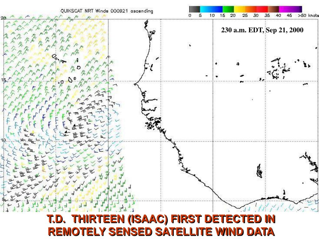 230 a.m. EDT, Sep 21, 2000 T.D. THIRTEEN (ISAAC) FIRST DETECTED IN REMOTELY SENSED SATELLITE WIND DATA