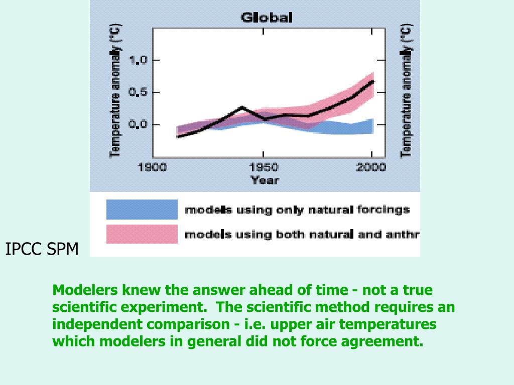 IPCC SPM Modelers knew the answer ahead of time - not a true scientific experiment. The scientific method requires an independent comparison - i.e. upper air temperatures which modelers in general did not force agreement.