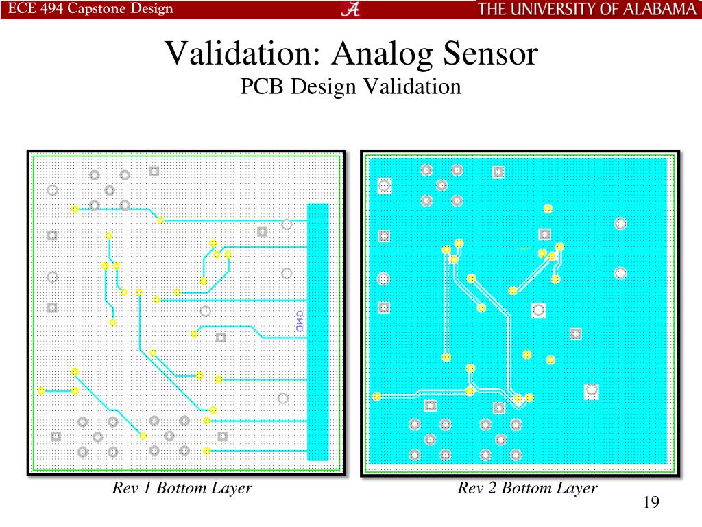 Validation: Analog Sensor PCB Design Validation Rev 1 Bottom Layer Rev 2 Bottom Layer