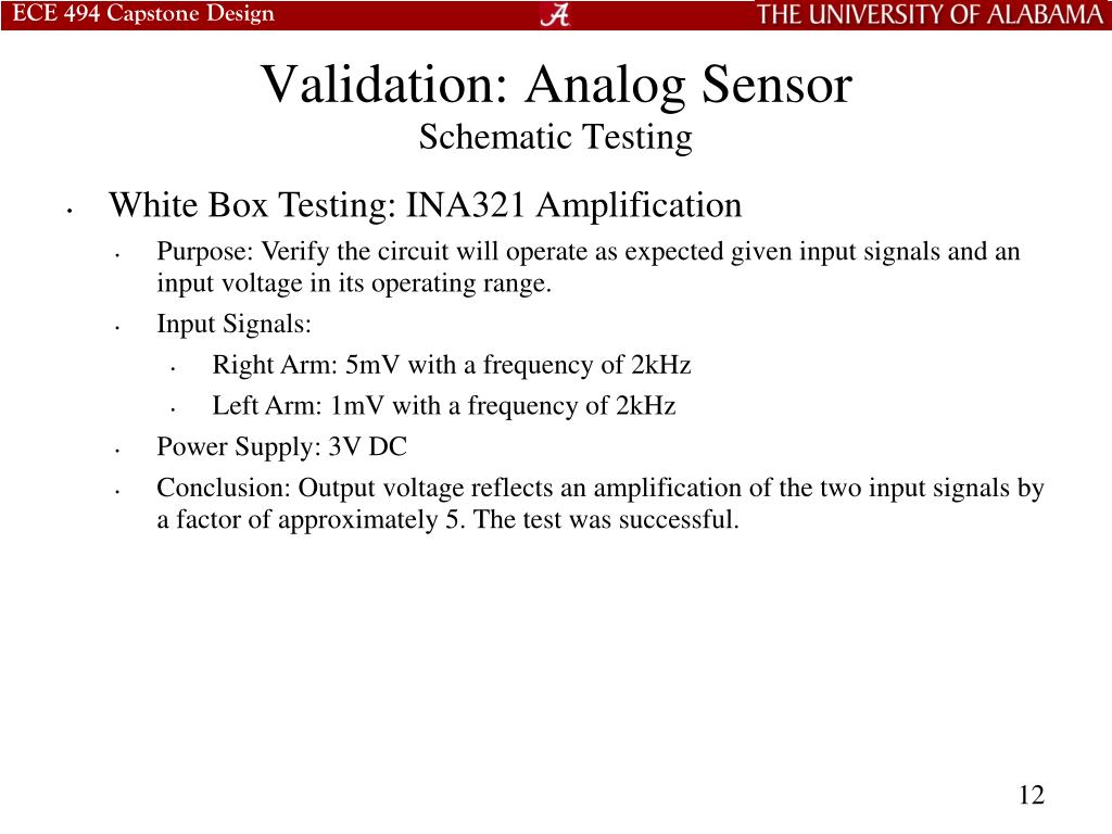 Validation: Analog Sensor Schematic Testing • White Box Testing Results: INA321 Amplification
