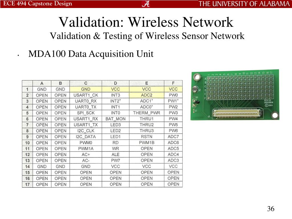 Validation: Wireless Network Validation & Testing of Wireless Sensor Network • MDA100 Data Acquisition Unit