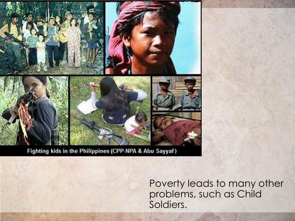 Poverty leads to many other problems, such as Child Soldiers.