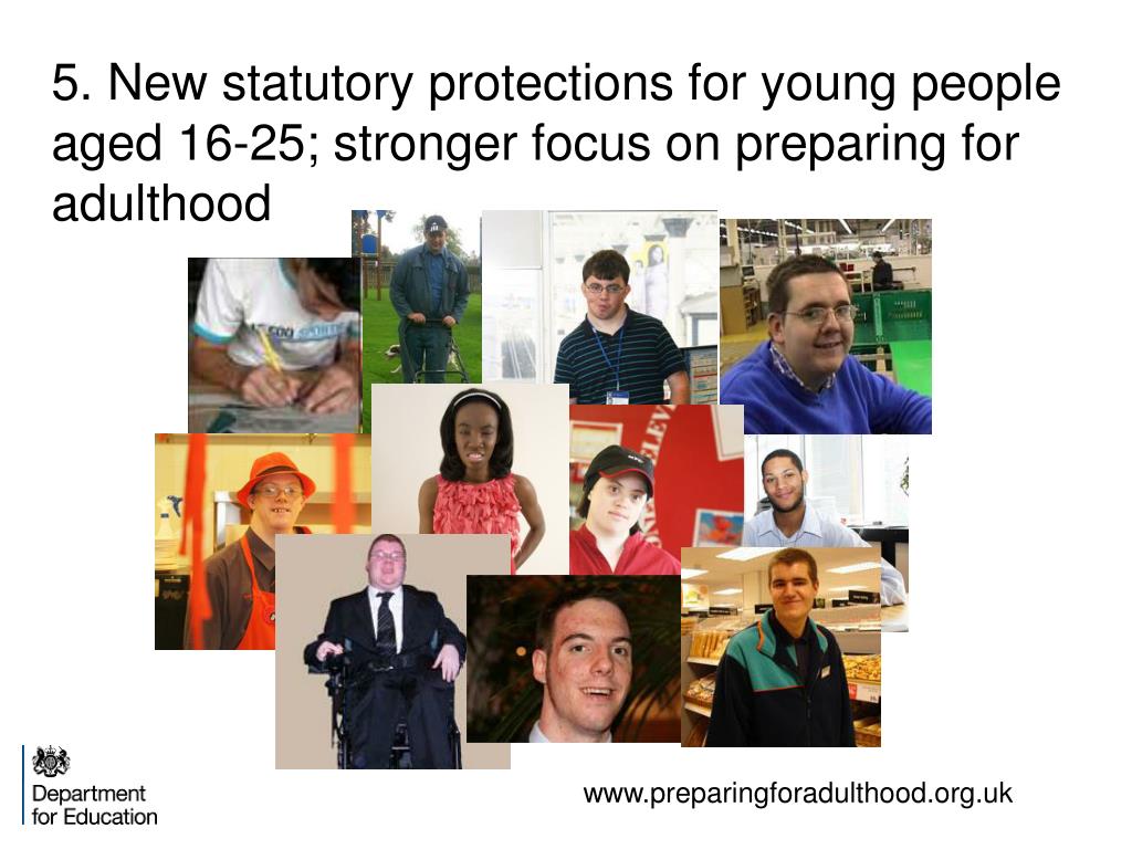 5. New statutory protections for young people aged 16-25; stronger focus on preparing for adulthood www.preparingforadulthood.org.uk