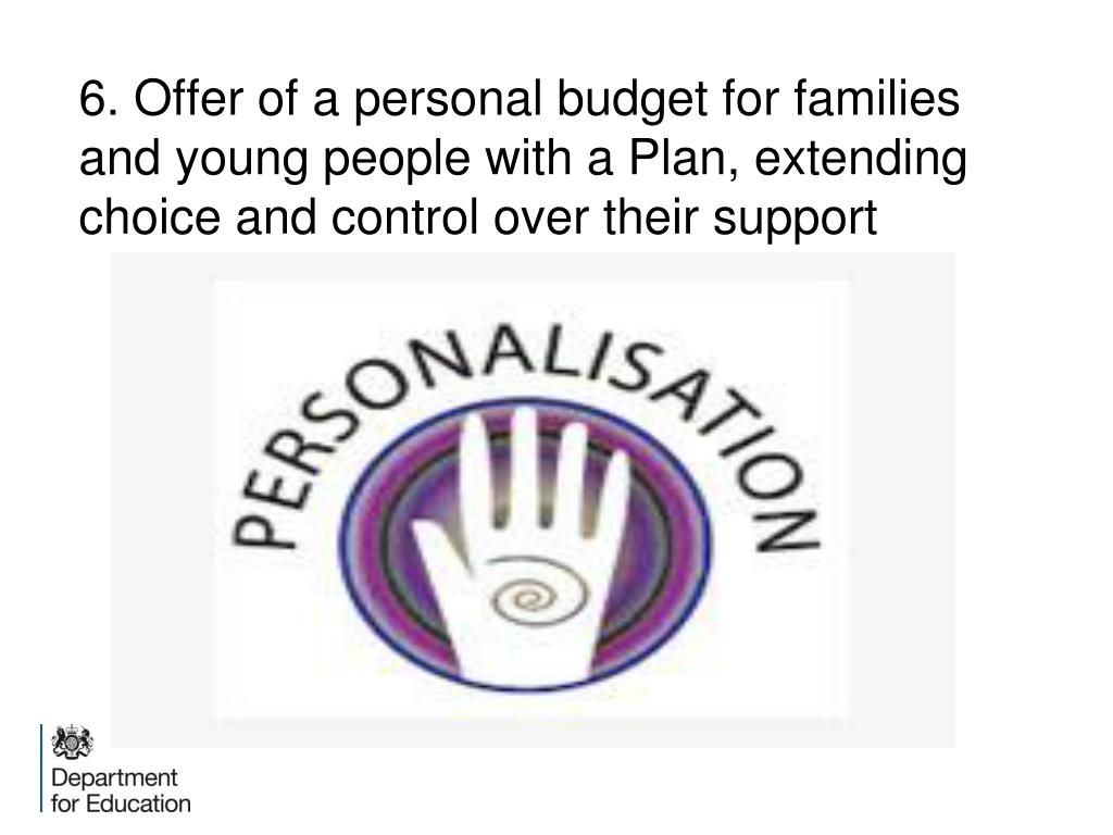 6. Offer of a personal budget for families and young people with a Plan, extending choice and control over their support
