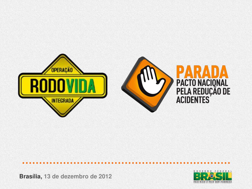 Brasília, 13 de dezembro de 2012. Ações do Ministério da Justiça. Ações do Ministério da Justiça. Operações Integradas 865 ações de 15/12/2011 a 27/02/2012. 155 ações específicas de alcoolemia. DPRF, DNIT, ANTT, PM, SMT, DETRAN. 344 ações envolvendo temas diversos. DPRF, PM, SMT, DETRAN.