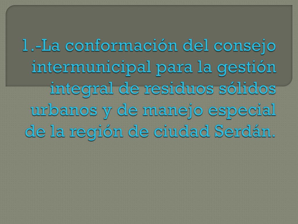 1.-La conformación del consejo intermunicipal para la gestión integral de residuos sólidos urbanos y de manejo especial de la región de ciudad Serdán.