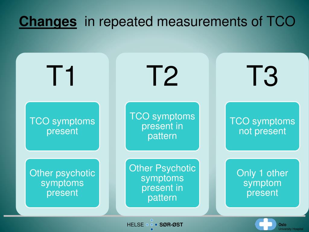 Perceivedthreat and controloverride symptoms (TCO) • Monitoredweekly for TCO- symptoms for 18 months. • At T3 a risk management plan wasformulated: - focuson TCO- symptoms - associatedwithirregularmenstruation. • Presenceof TCO- symptoms: • Risk factor and, • Warningsign (SWAB) • For vilolencetowardself/others • Patientacknowledgedthisrelationship • Medicationwithbirthpills.