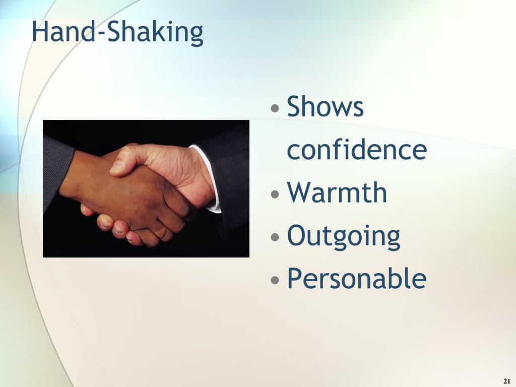Hand-Shaking Shows confidence Warmth Outgoing Personable