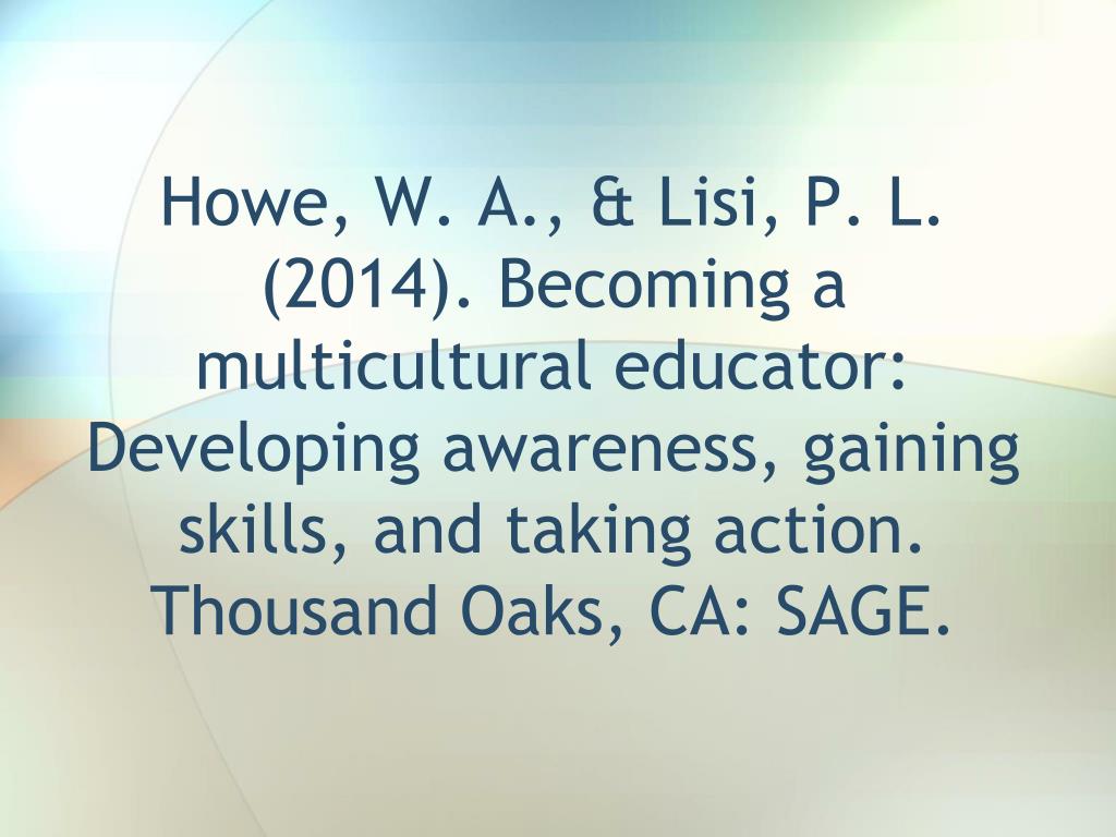 Howe, W. A., & Lisi, P. L. (2014). Becoming a multicultural educator: Developing awareness, gaining skills, and taking action. Thousand Oaks, CA: SAGE.