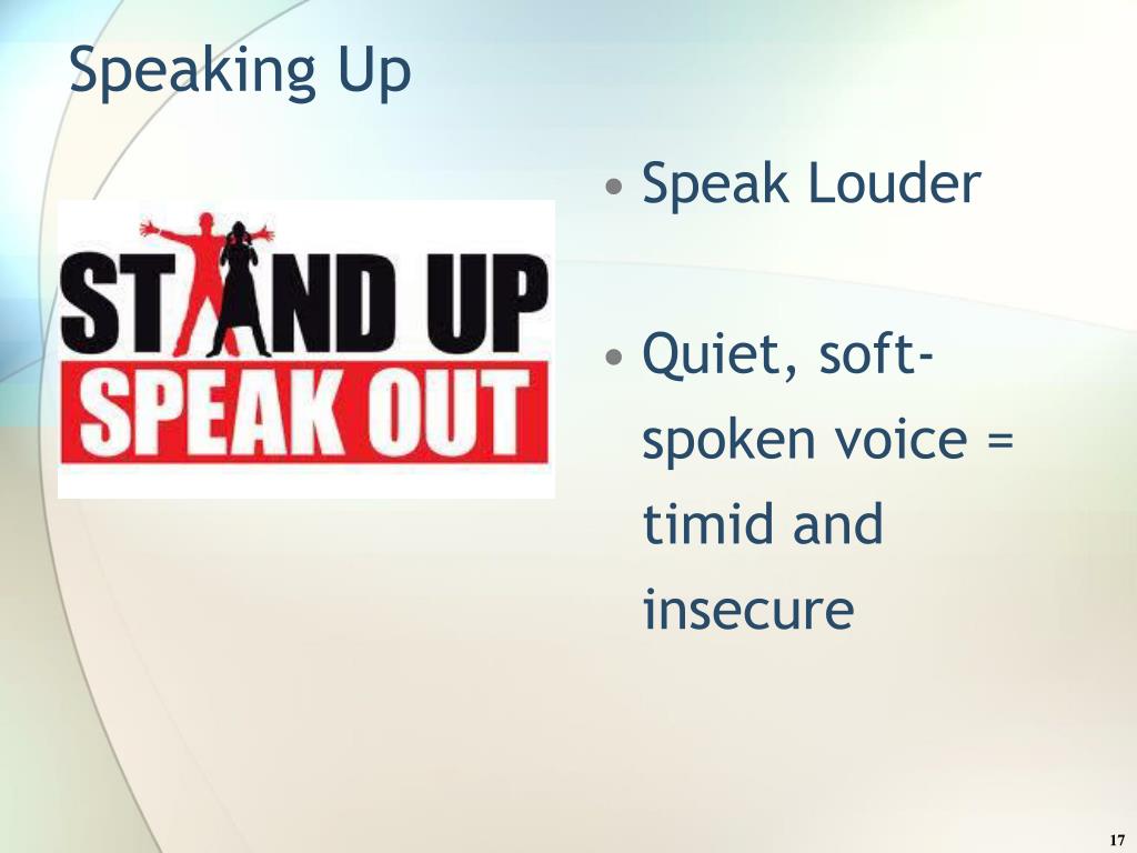 Speaking Up Speak Louder Quiet, soft-spoken voice = timid and insecure