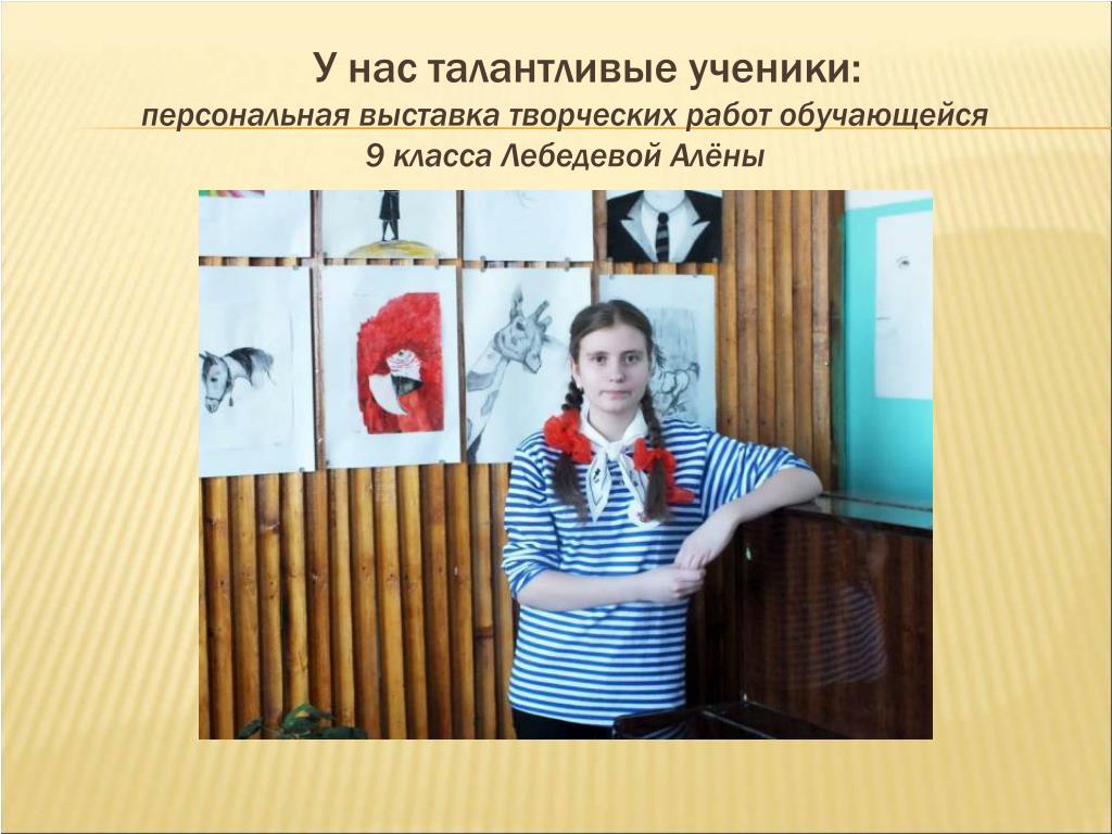 У нас талантливые ученики:персональная выставка творческих работ обучающейся9 класса Лебедевой Алёны