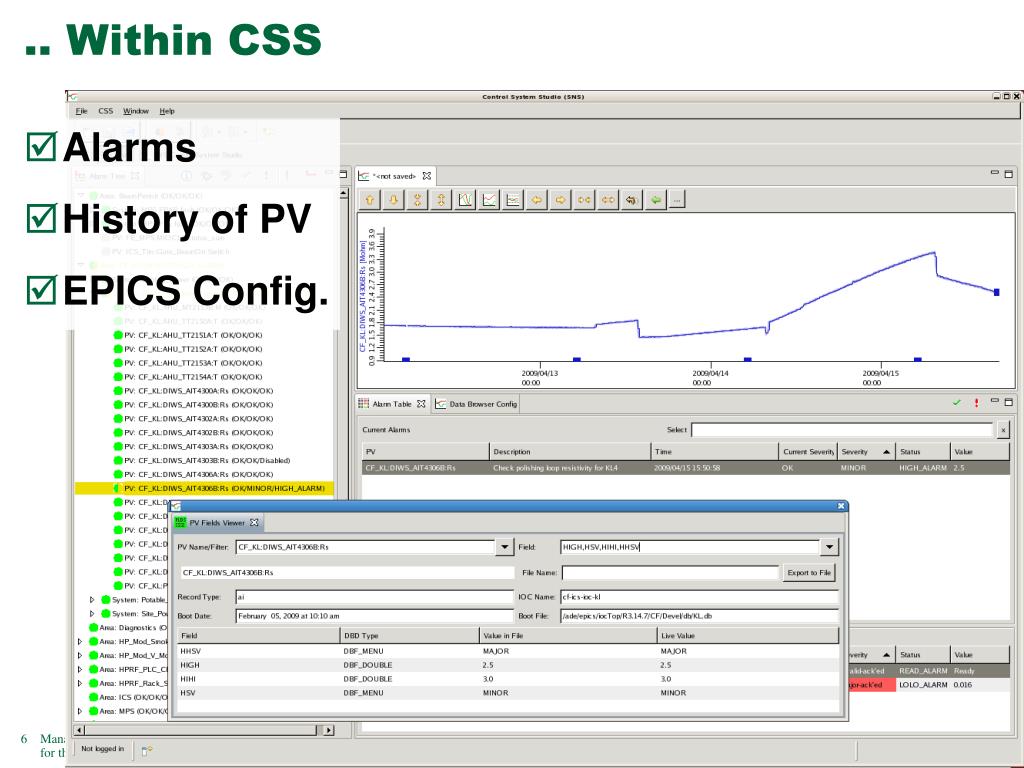 .. Within CSS • Alarms • History of PV • EPICS Config.