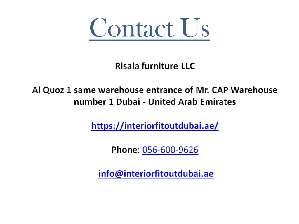 Contact Us Risala furniture LLC Al Quoz 1 same warehouse entrance of Mr. CAP Warehouse number 1 Dubai - United Arab Emirates https://woodenflooring.ae/ Phone: 056-600-9626 Email : info@woodenflooring.ae