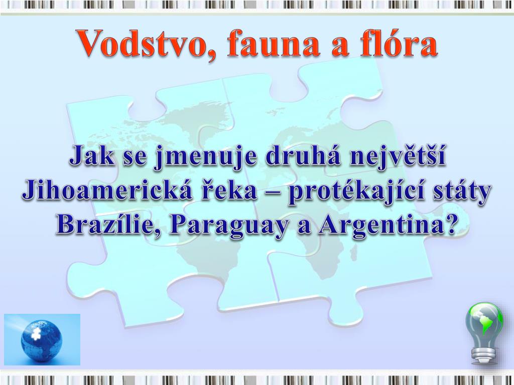 Vodstvo, fauna a flóra Jak se jmenuje druhá největší Jihoamerická řeka – protékající státy Brazílie, Paraguay a Argentina?