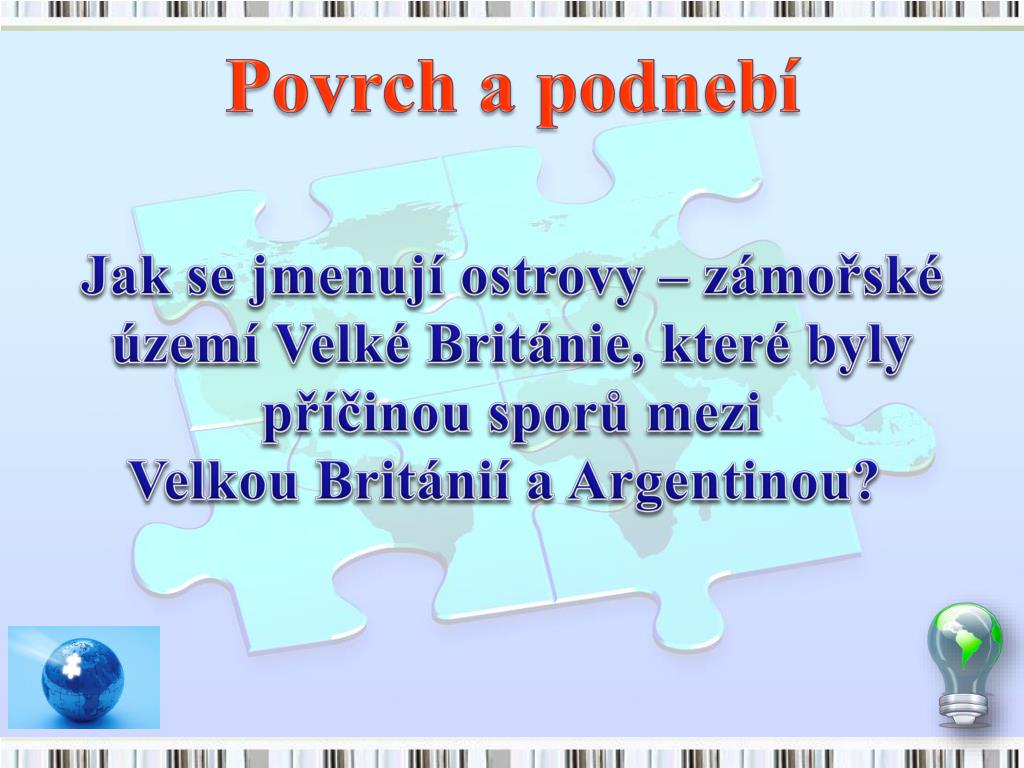 Povrch a podnebí Jak se jmenují ostrovy – zámořské území Velké Británie, které byly příčinou sporů mezi Velkou Británií a Argentinou?
