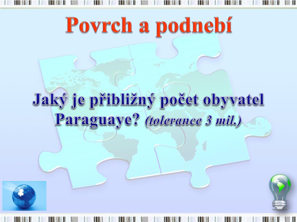 Povrch a podnebí Jaký je přibližný počet obyvatel Paraguaye? (tolerance 3 mil.)