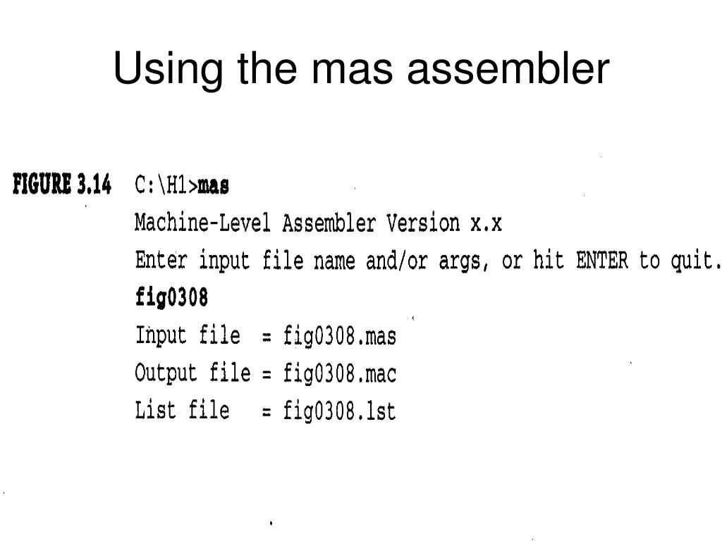 Assume we have an assembly language program in a file named fig0308.mas.The next slide shows you how to assemble it using the mas assembler.