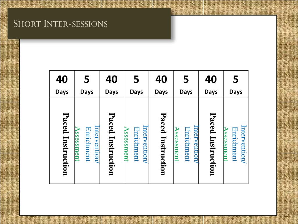 Short Inter-sessions Paced Instruction Paced Instruction Paced Instruction Paced Instruction Assessment Assessment Assessment Assessment Intervention/ Enrichment Intervention/ Enrichment Intervention/ Enrichment Intervention/ Enrichment