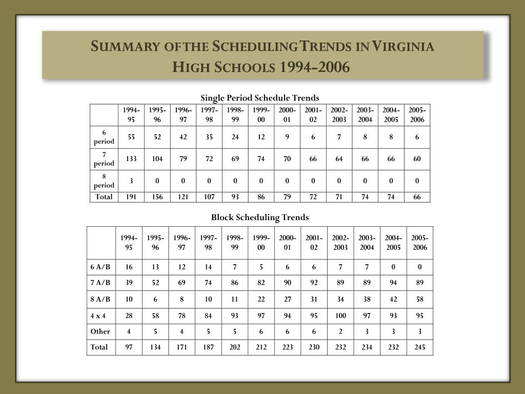 Summary of the Scheduling Trends in Virginia High Schools 1994-2006