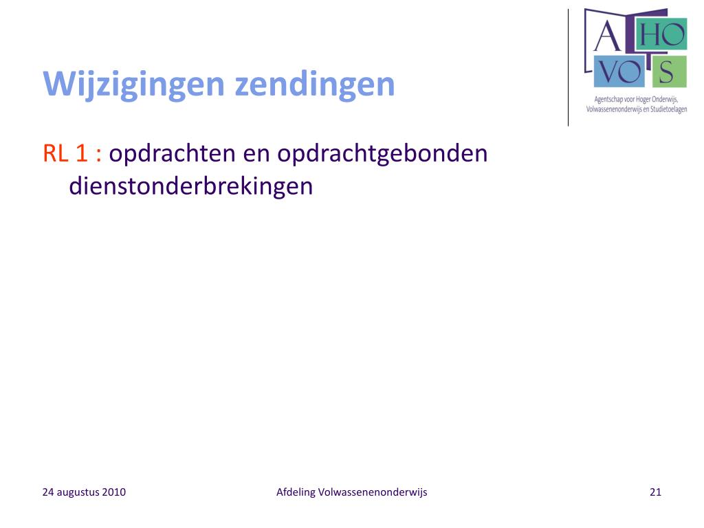 Wijzigingen zendingen RL 1 : opdrachten en opdrachtgebonden dienstonderbrekingen Afdeling Volwassenenonderwijs