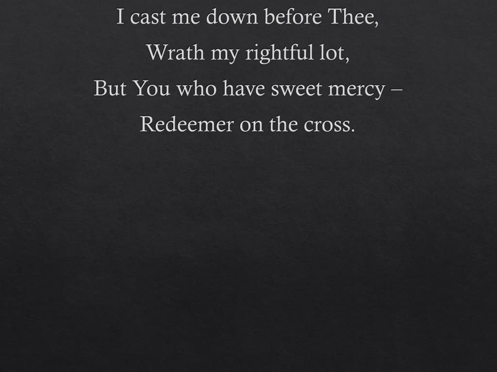 I cast me down before Thee, Wrath my rightful lot, But You who have sweet mercy– Redeemer on the cross.