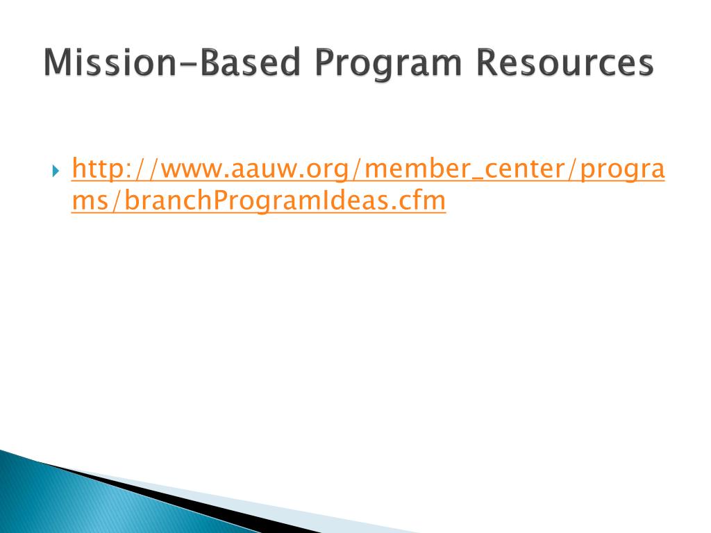 Mission-Based Program Resources • http://www.aauw.org/member_center/programs/branchProgramIdeas.cfm