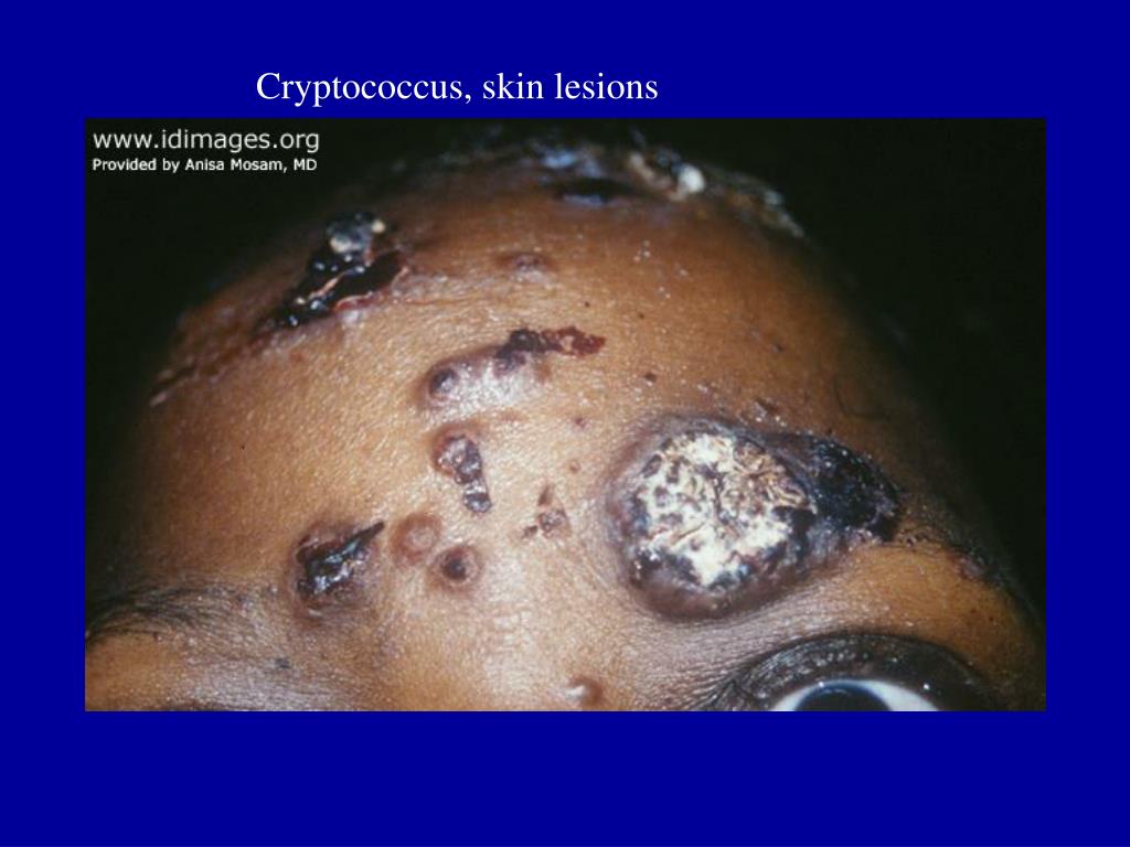 Clinical Manifestations CNS • Subacute meningitis or meningo-encephalitis • Headache, fever, cranial nerve palsies, lethargy, coma • Subacute (days) months HIV • Higher yeast burden • incidence raised intracranial pressure • Often disseminated • Immune reconstitution disease