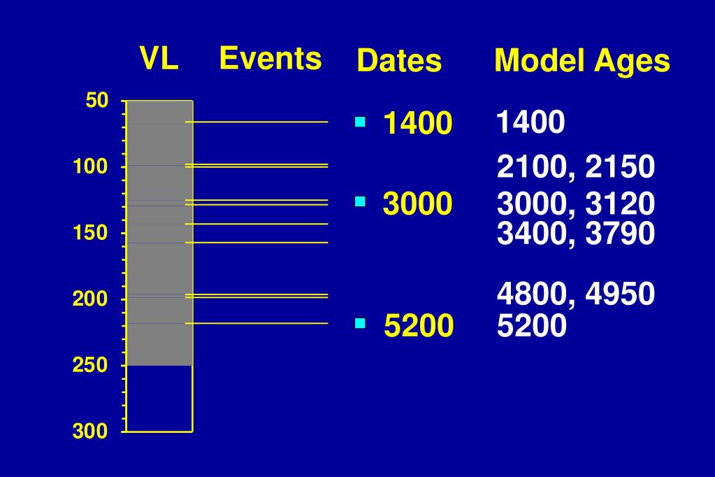 Events Dates Model Ages 1400 1400 2100, 2150 3000 3000, 3120 3400, 3790 4800, 4950 5200 5200