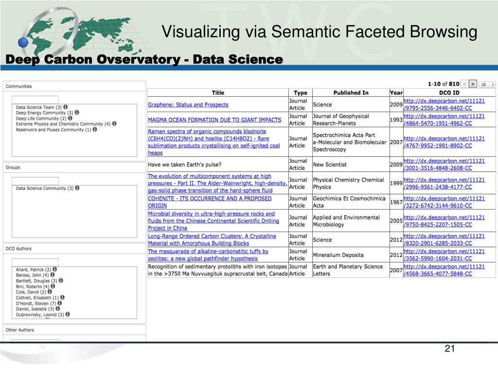 Visualizing via Semantic Faceted Browsing Deep Carbon Ovservatory - Data Science