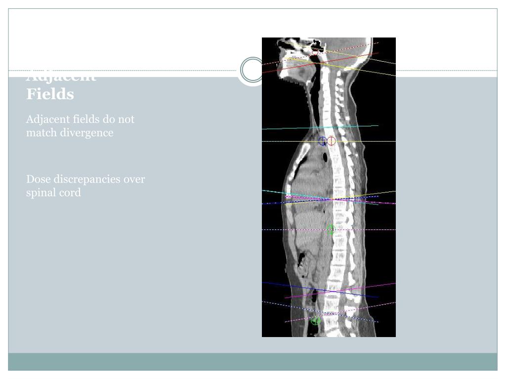 Adjacent Fields Adjacent fields do not match divergence Dose discrepancies over spinal cord