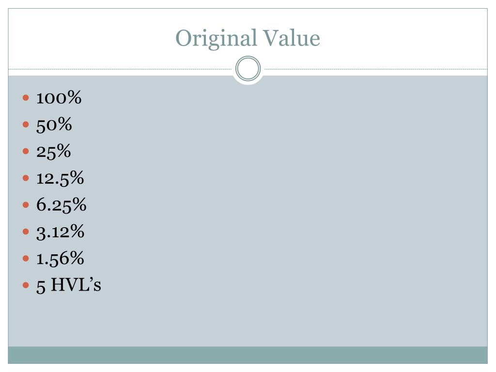 Original Value 100% 50% 25% 12.5% 6.25% 3.12% 1.56% 5 HVL’s