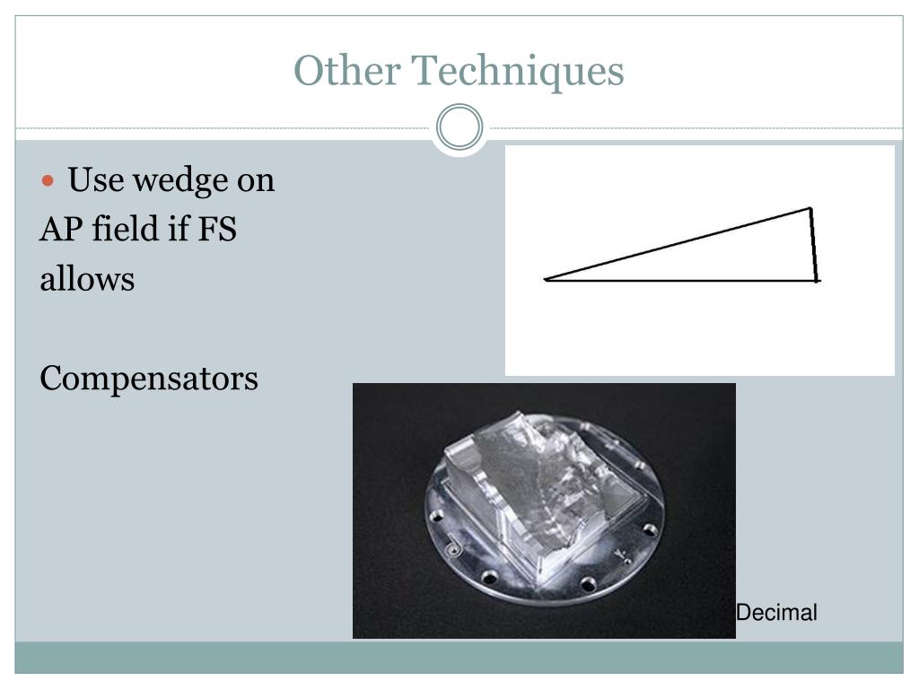 Other Techniques Use wedge on AP field if FS allows Compensators Decimal