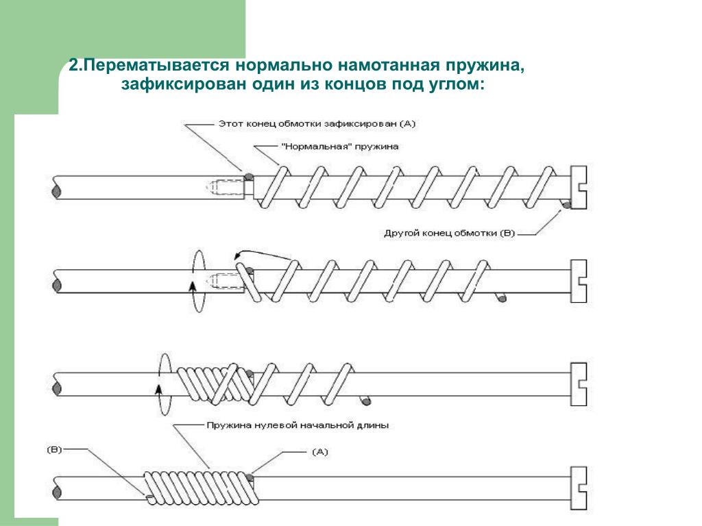 2.Перематывается нормально намотанная пружина, зафиксирован один из концов под углом: