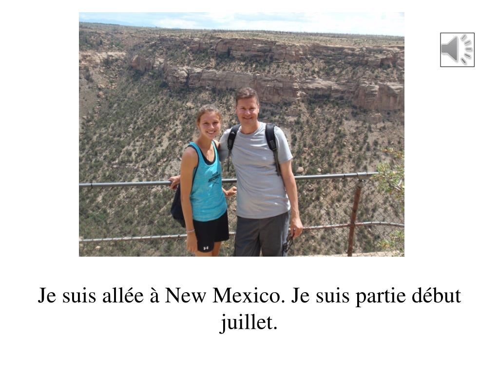 Les vacances de Gabrielle . Gabrielle Hermann French 3 Period 13. Je suis all é e à New Mexico. Je suis partie début juillet . J’y suis all ée avec ma famille . . Il a fait chaud . J’ai dormi à l’hôtel marriott . Il se trouve au sud-ouest de la USA.