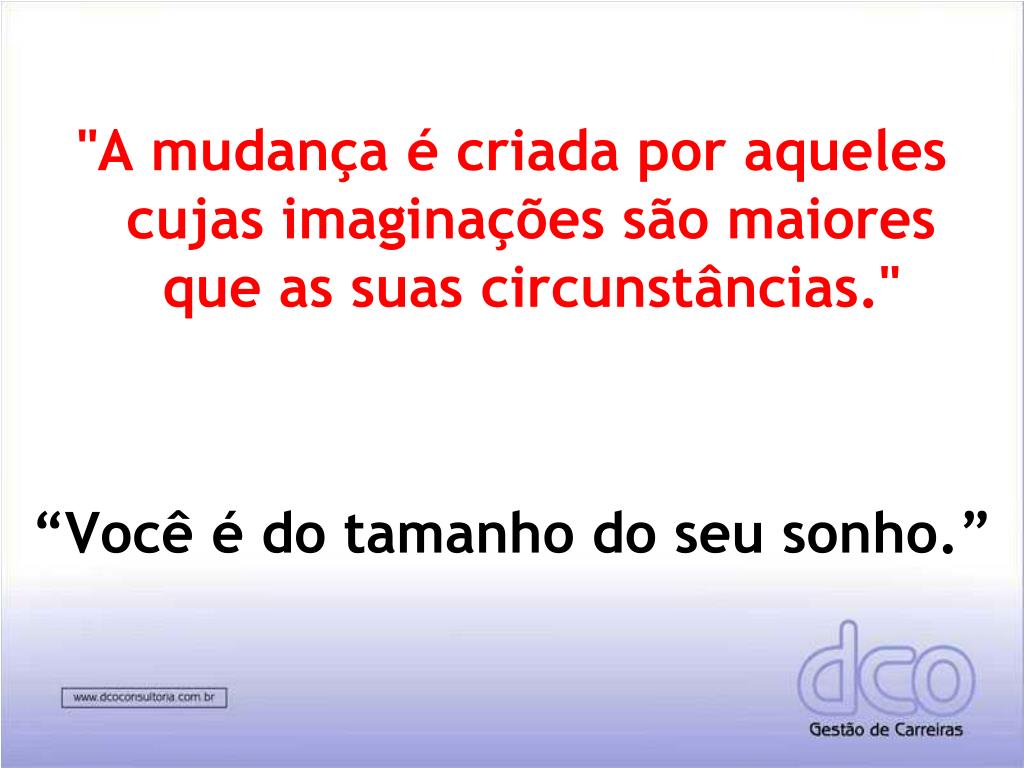 "A mudança é criada por aqueles cujas imaginações são maiores que as suas circunstâncias." “Você é do tamanho do seu sonho.”