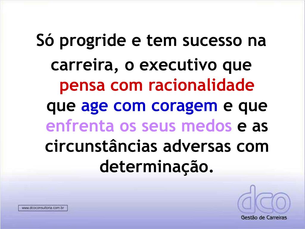 Só progride e tem sucesso na carreira, o executivo que pensa com racionalidade que age com coragem e que enfrenta os seus medos e as circunstâncias adversas com determinação.